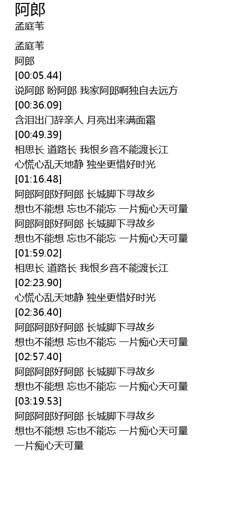 | [02:59.39] | 阿郎阿郎好阿郎 长城脚下寻故乡 |