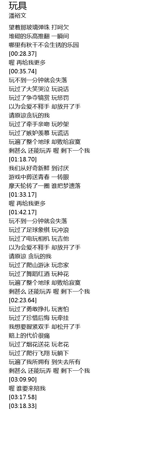 | [03:00.25] | 剩甚么 还能玩弄 喔 剩下一个我 |