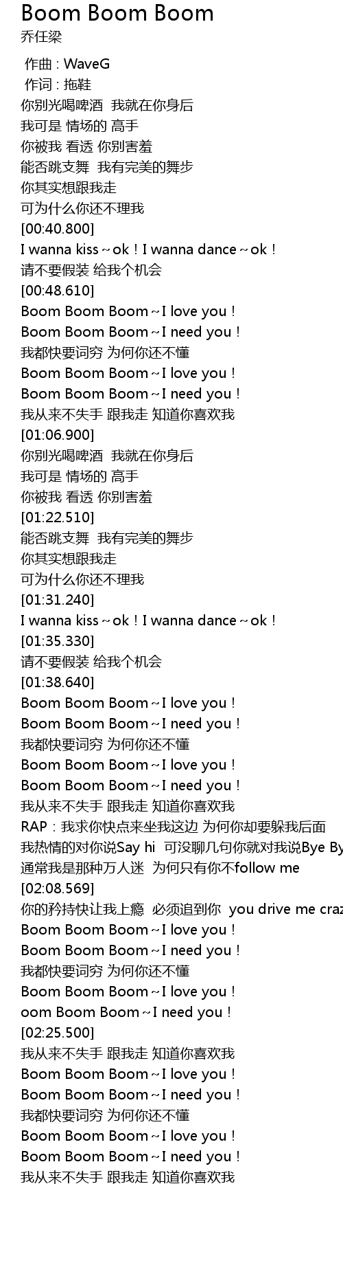 | [02:31.269] | Boom Boom Boom I love you! |
