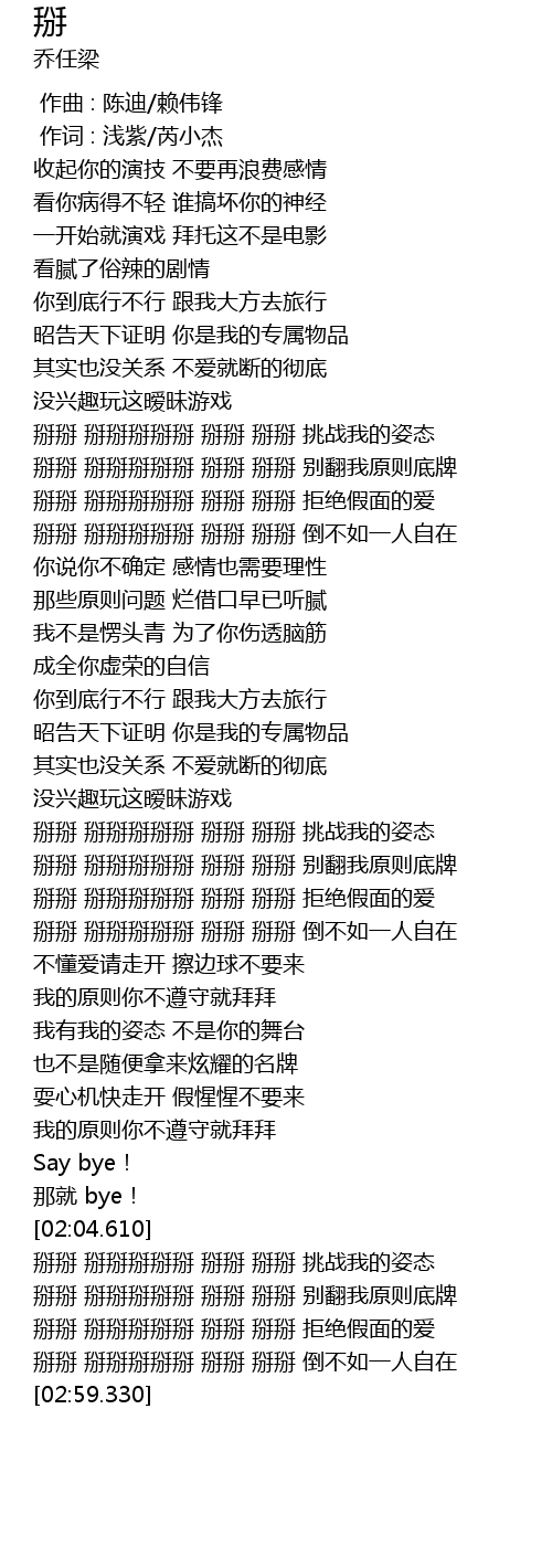 | [02:40.650] | 掰掰 掰掰掰掰掰 掰掰 掰掰 别翻我原则底牌 |