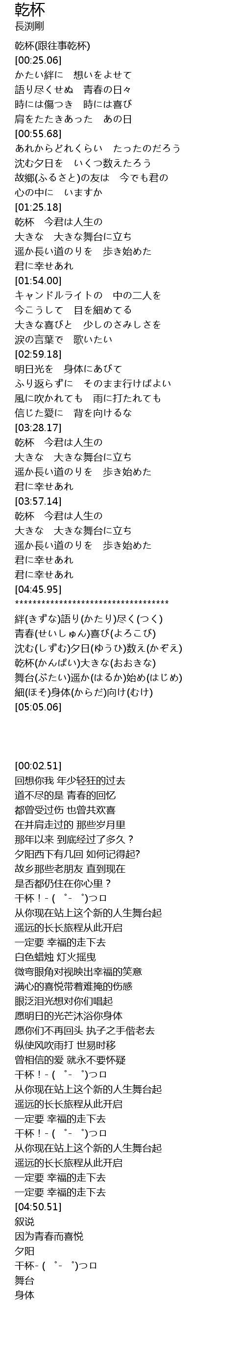 | [00:02.51] | gan bei gen wang shi gan bei |