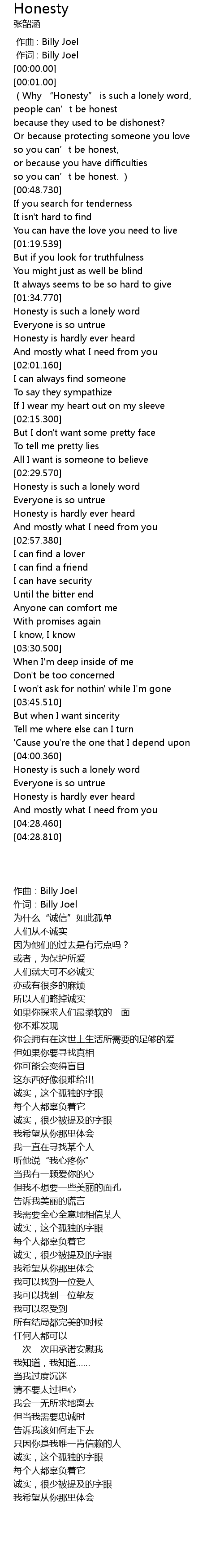 | [02:31.460] | Honesty is such a lonely word |