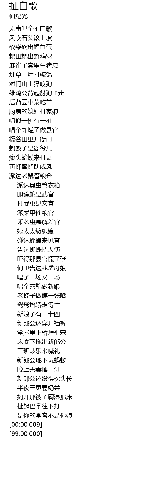 | [01:20.31] | 唱个蚱蜢子做县官 |