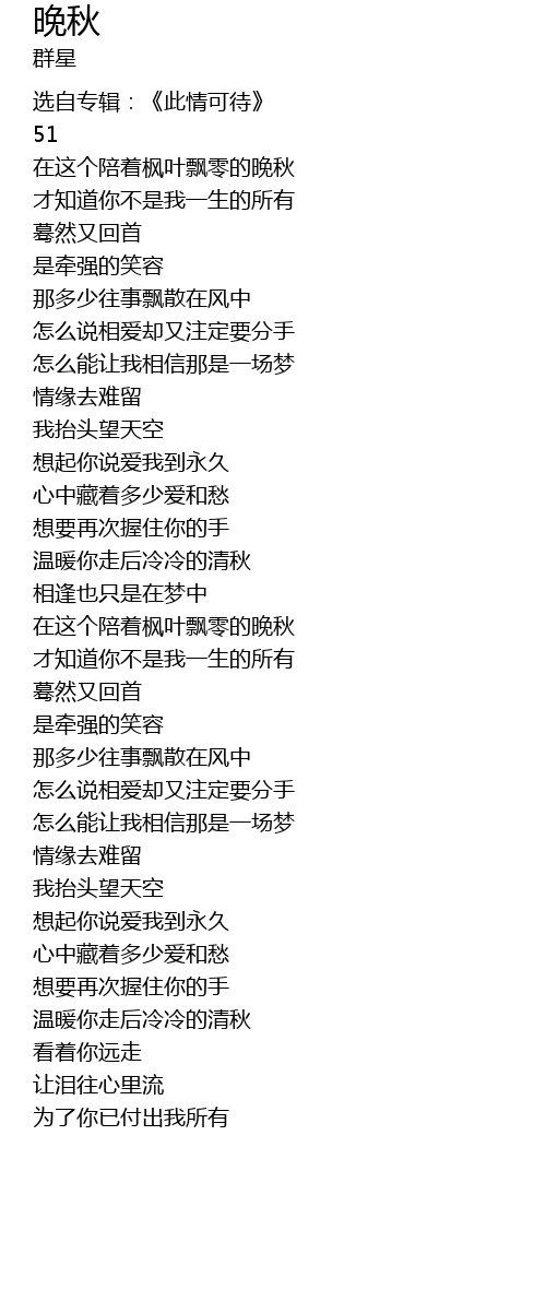 | 歌曲 | 晚秋 |