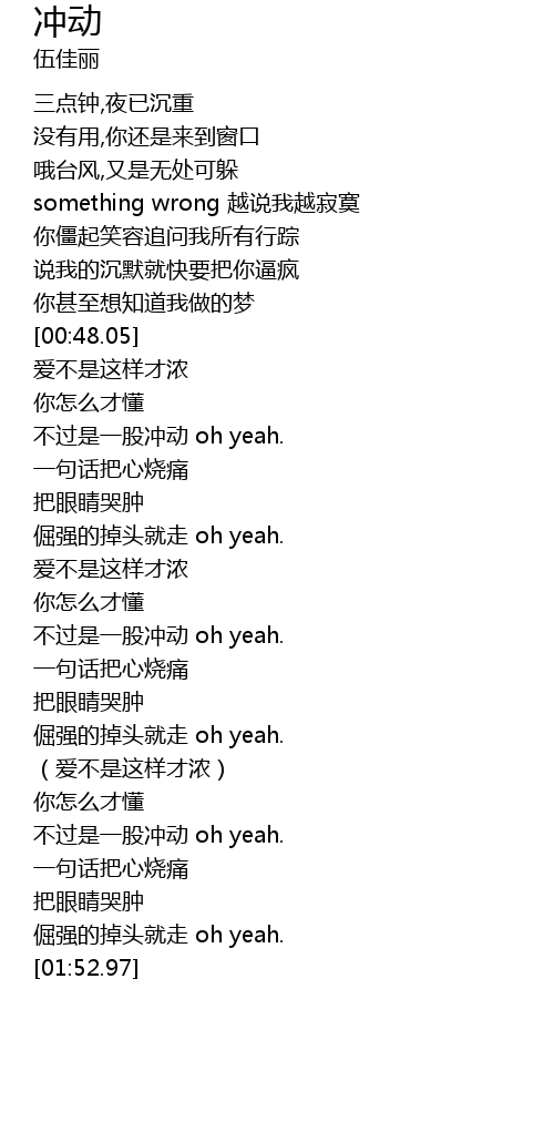 | [00:53.84] | 不过是一股冲动 oh yeah. |
