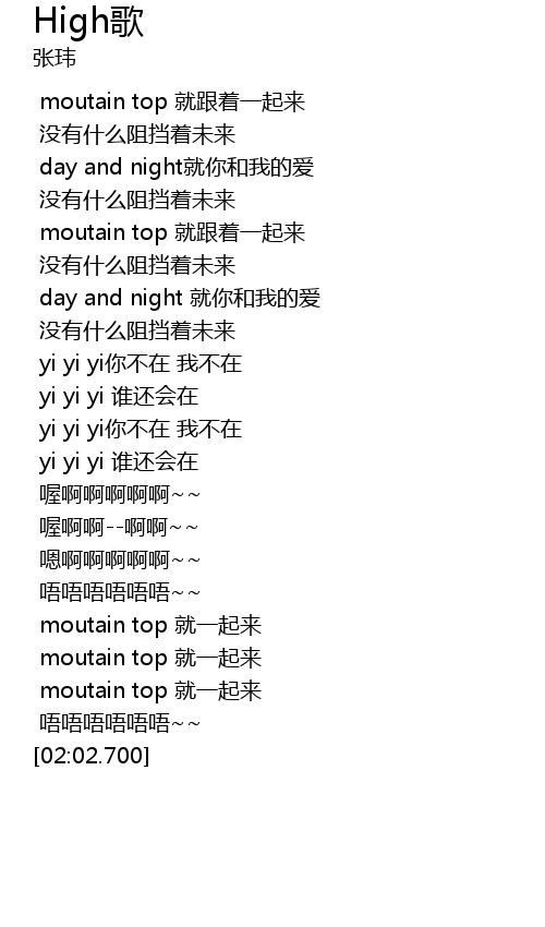 | [01:39.970] | moutain top jiù yì qǐ lái |