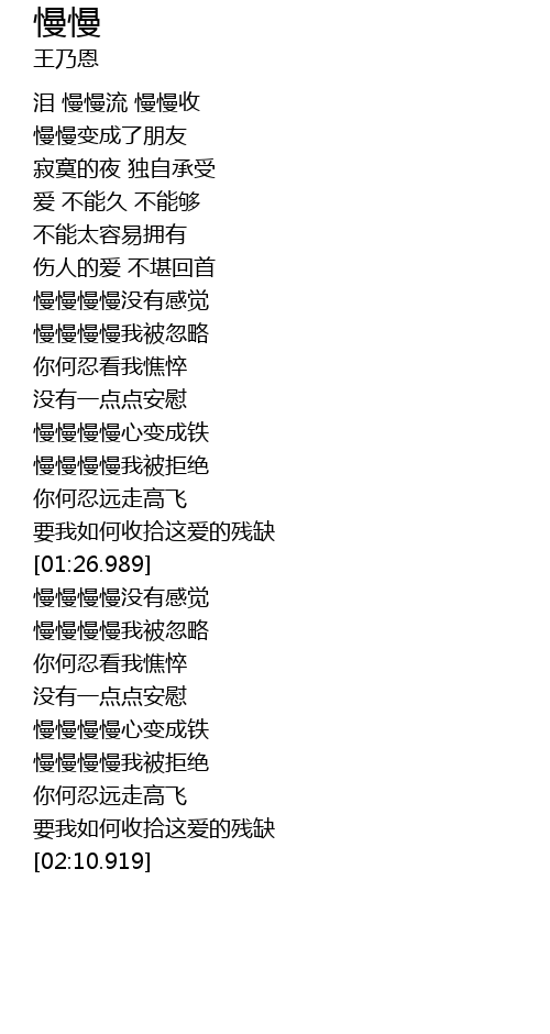 | [01:44.279] | màn màn màn màn xīn biàn chéng tiě |