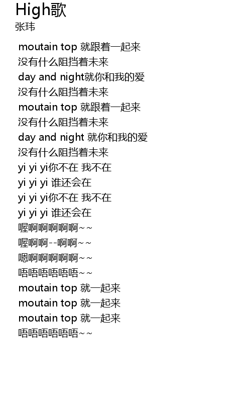 | [00:11.800] | moutain top jiù gēn zhe yì qǐ lái |
