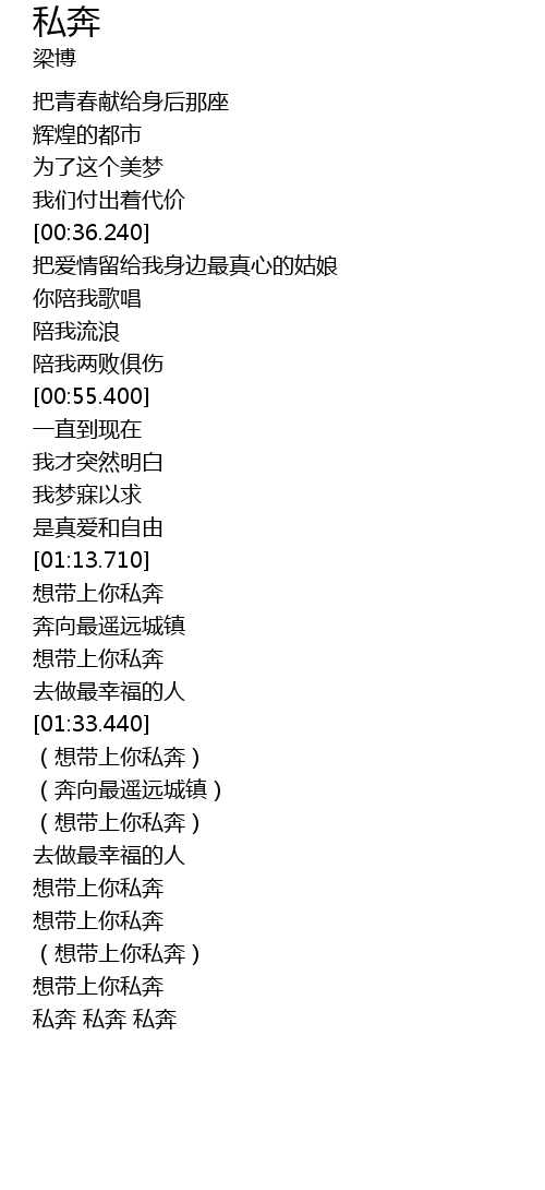 | [02:05.250] | 私奔 私奔 私奔 |