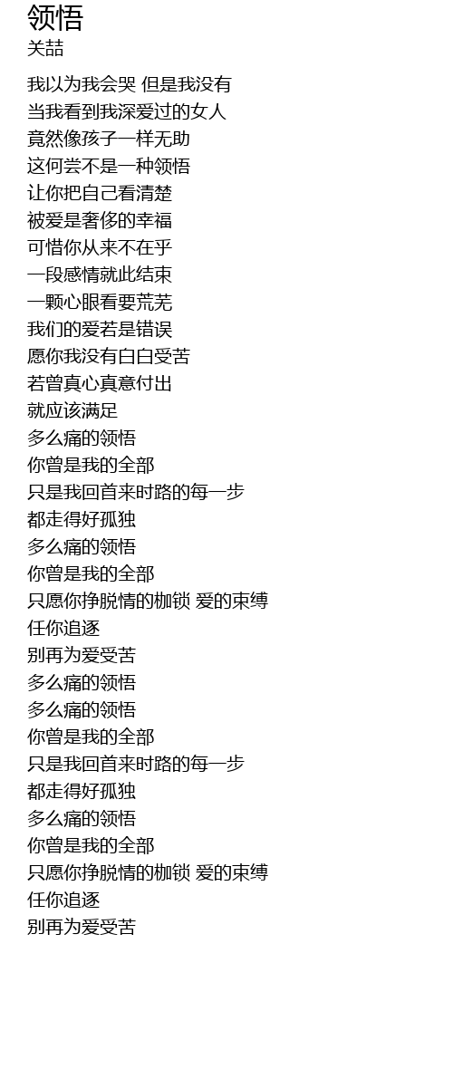 | 歌曲 | 领悟 |