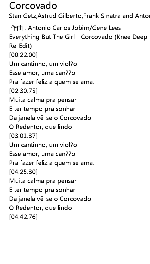 | [00:02.00] | Everything But The Girl Corcovado Knee Deep RemixBen Watt Vocal ReEdit |