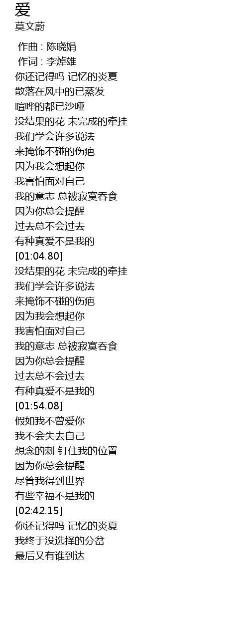 | [01:46.24] | 有种真爱不是我的 |