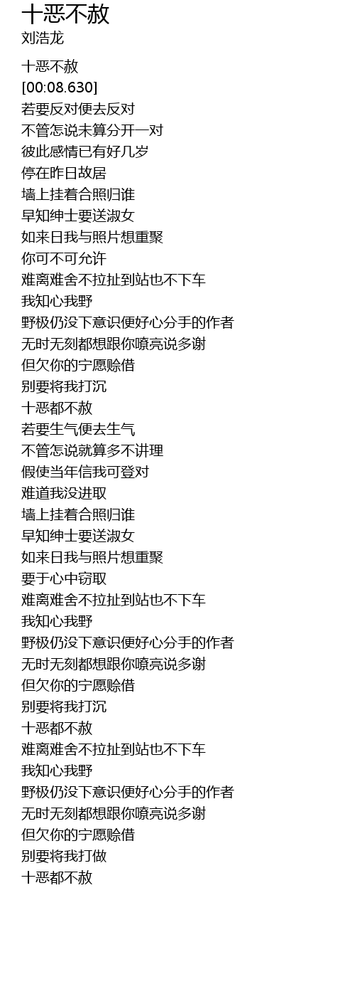 | [00:59.409] | 野极仍没下意识便好心分手的作者 |