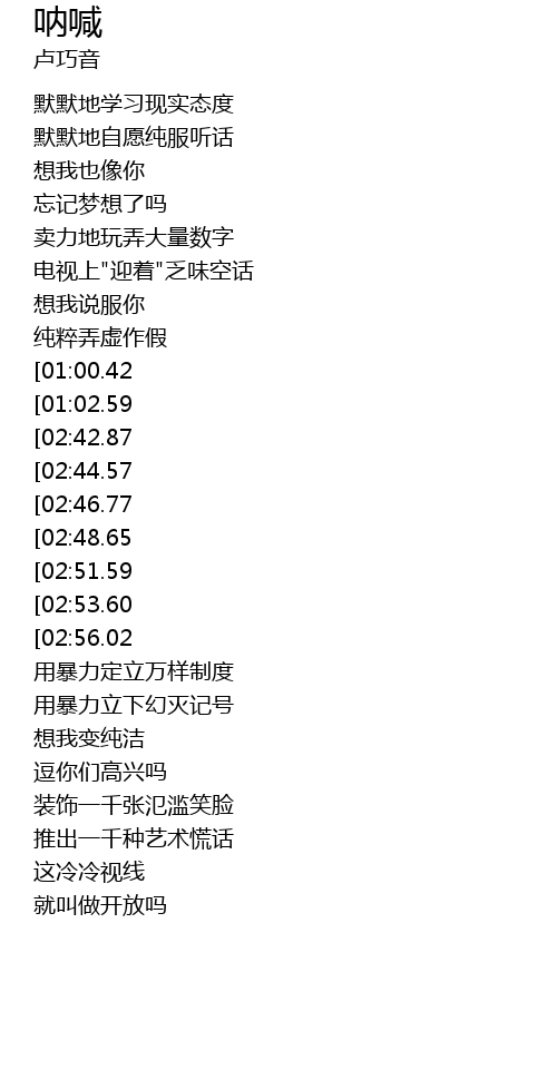 | [03:10.04][02:51.59][01:19.17] | 我要唱这阙发泄的歌 |