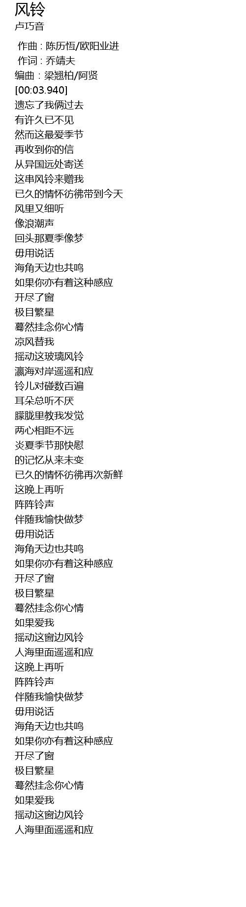 | [03:11.970] | 摇动这窗边风铃 |