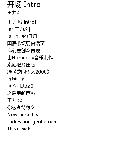 | [ti:开场 Intro] | |