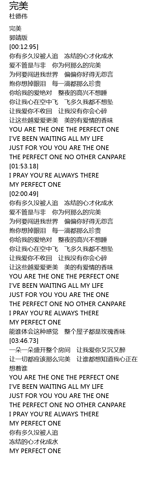 | [03:07.51] | YOU ARE THE ONE THE PERFECT ONE |