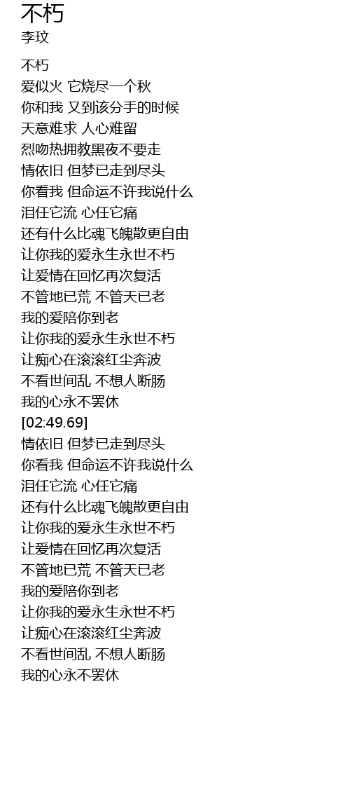 | [03:34.57] | 让你我的爱永生永世不朽 |
