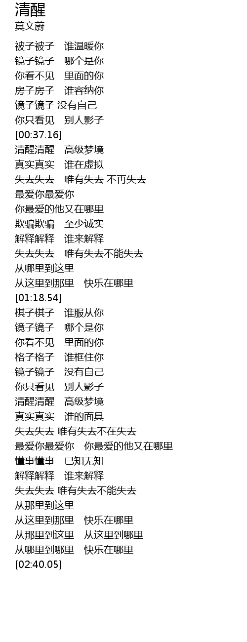 | [00:38.22] | 清醒清醒 高级梦境 |