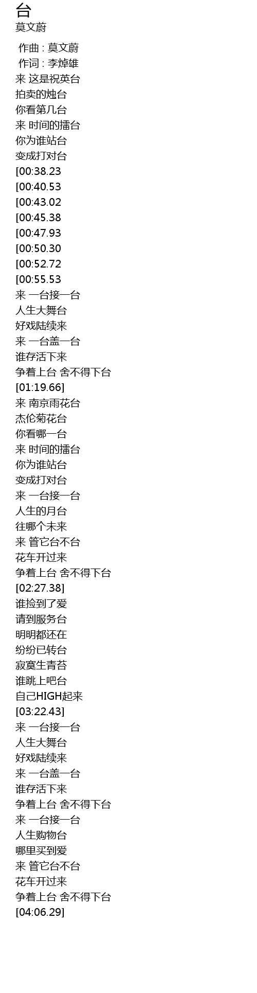 | [04:01.38] | 争着上台 舍不得下台 |