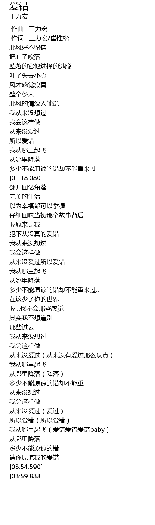 | [00:55.618] | 所以爱错 |