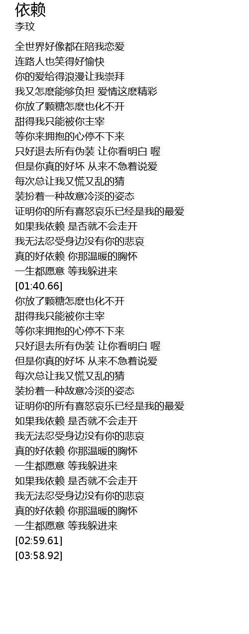 | [01:30.96] | 真的好依赖 你那温暖的胸怀 |