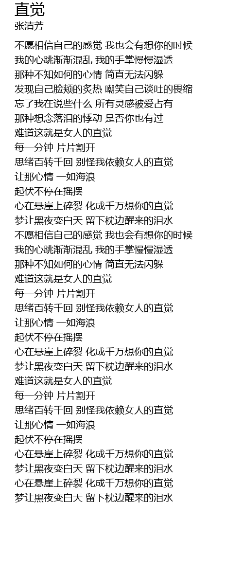 | [01:06.04] | 思绪百转千回 别怪我依赖女人的直觉 |