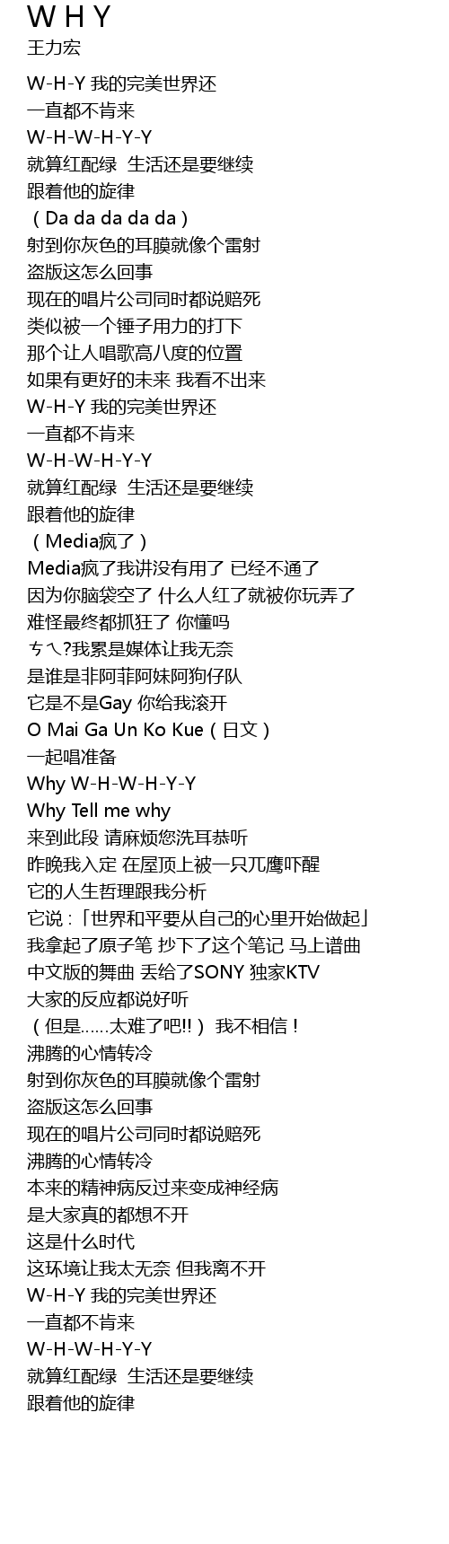 | 歌曲 | W H Y |