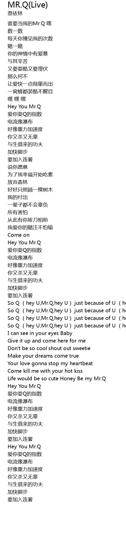 | [00:47.13] | Hey You Mr. Q |