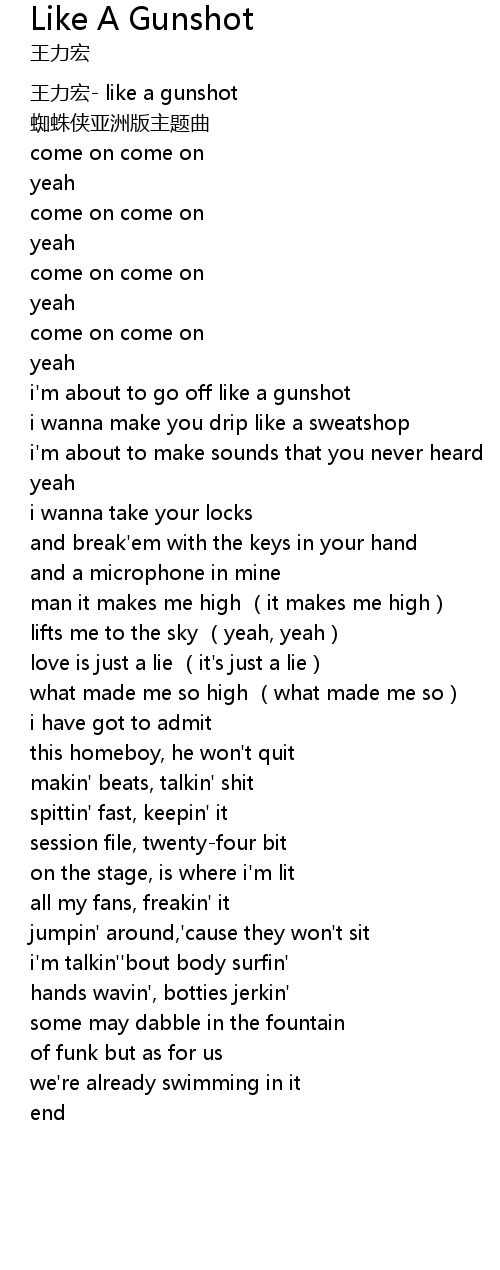 | [00:04.59] | 王力宏- like a gunshot |