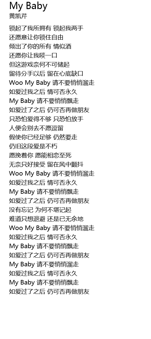 | [04:01.02] | My Baby 请不要悄悄飘走 |
