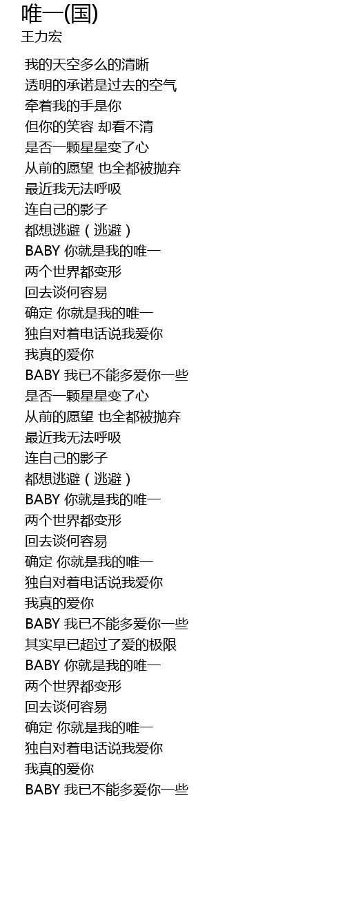 | [01:16.600] | BABY nǐ jiù shì wǒ de wéi yī |