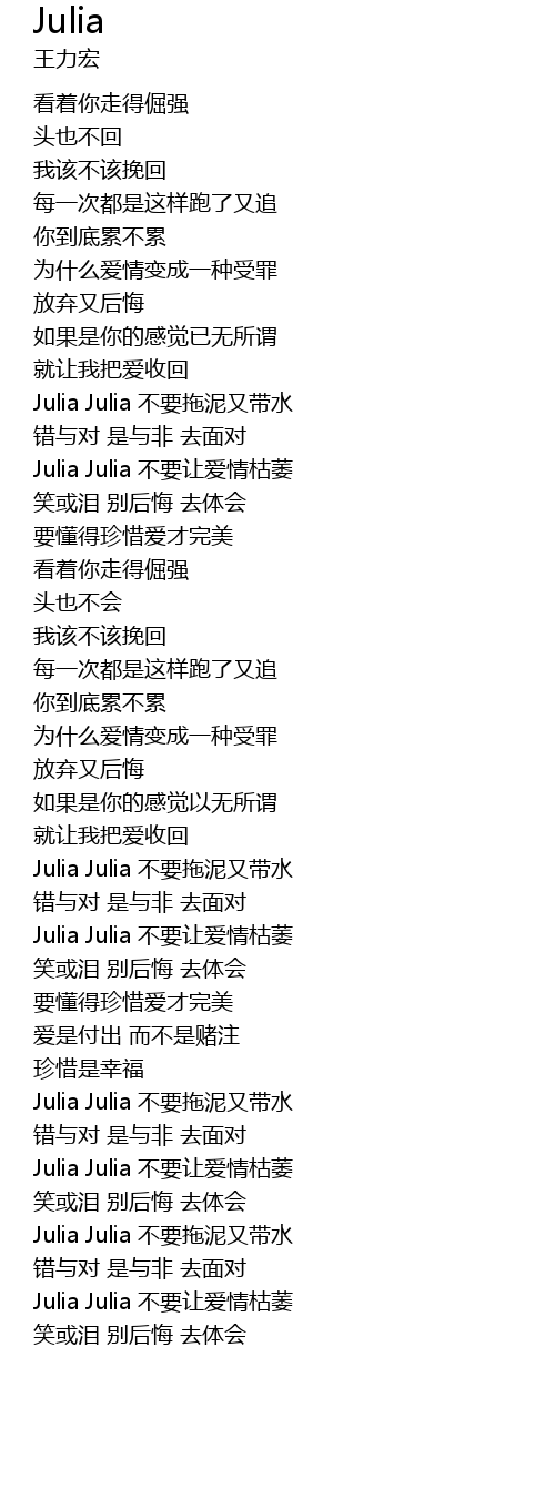 | [01:15.11] | Julia Julia bú yào ràng ài qíng kū wěi |