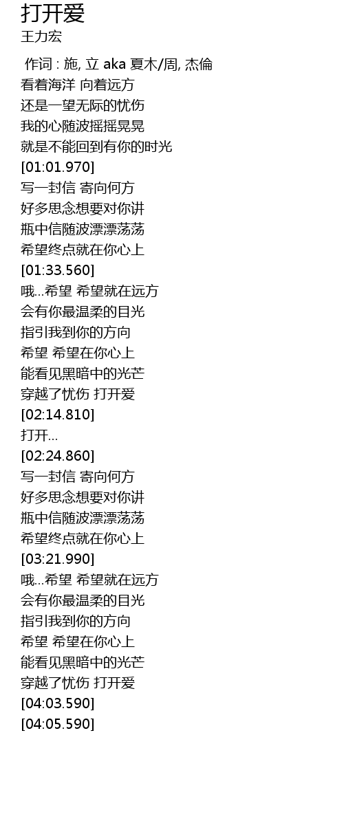 | [01:56.350] | 希望 希望在你心上 |