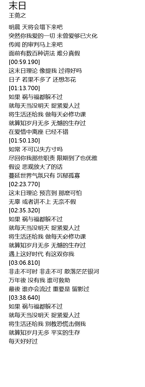 | [02:24.150] | 这末日理论 预言到 那麽可怕 |