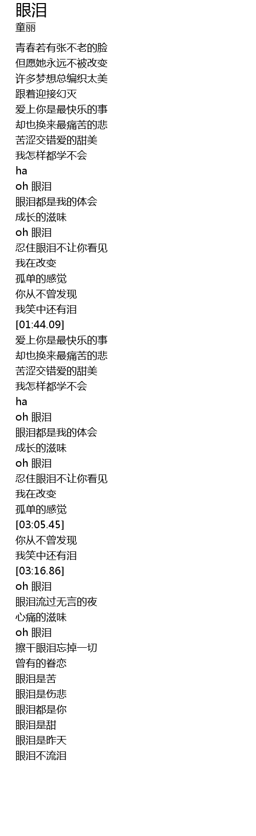 | [03:18.57] | oh 眼泪 |