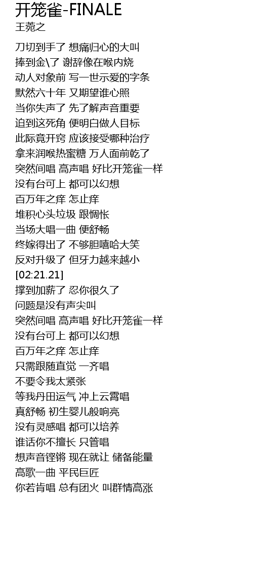 | [02:41.60] | 突然间唱 高声唱 好比开笼雀一样 |