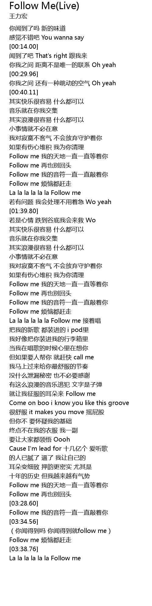 | [03:35.10] | ni wen de dao ma ni wen de dao jiu follow me |