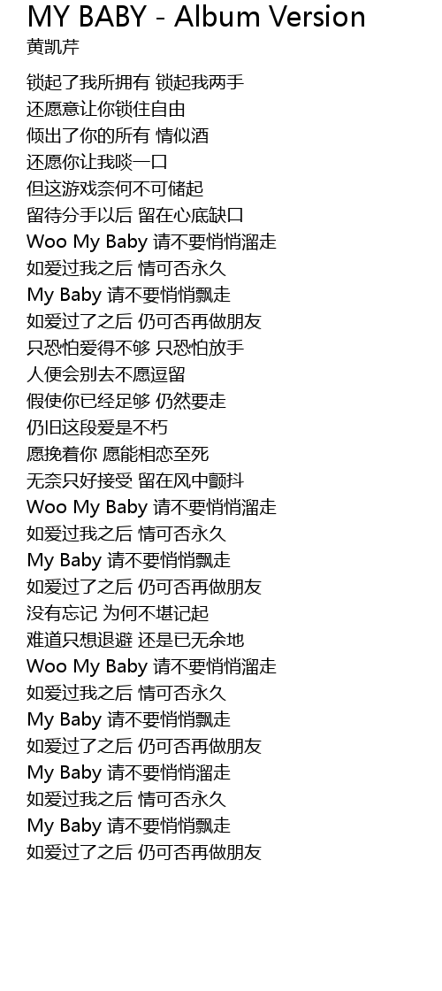 | [04:01.02] | My Baby qing bu yao qiao qiao piao zou |