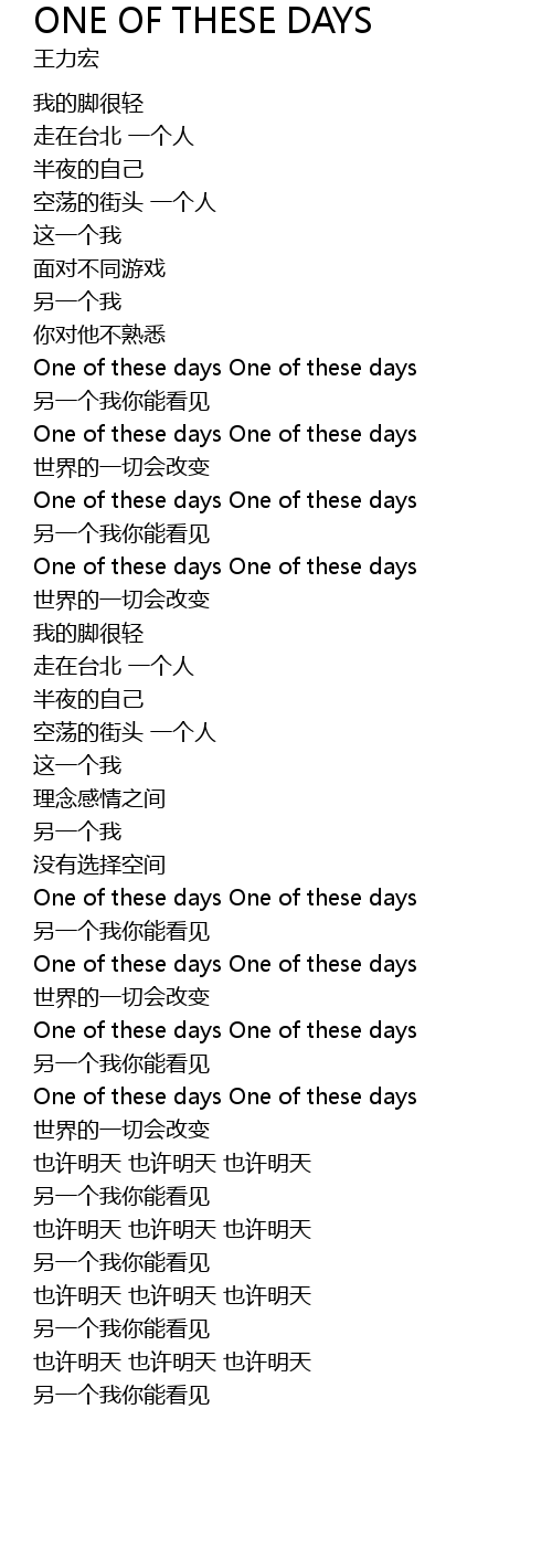 | [01:42.00] | One of these days One of these days |