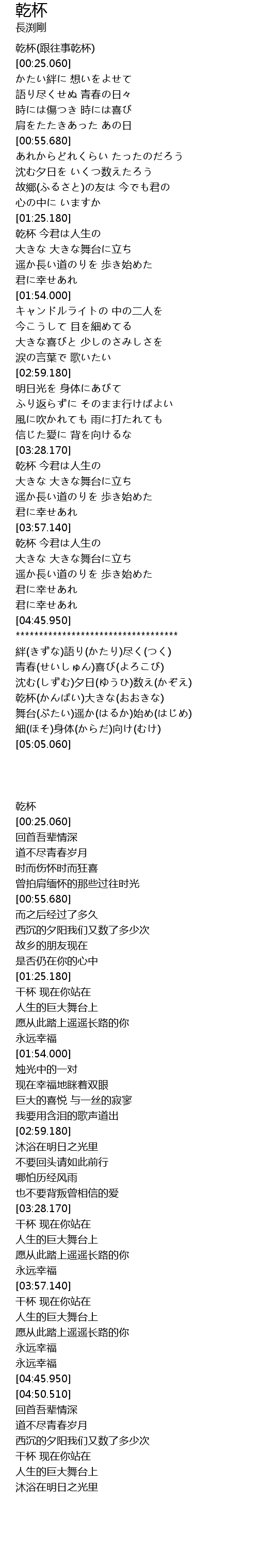 | [04:57.890] | 乾杯(かんぱい)大きな(おおきな) |