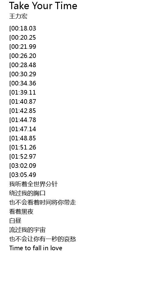 | [03:22.03][03:05.49][01:59.24][01:02.23] | Take your time take you time |