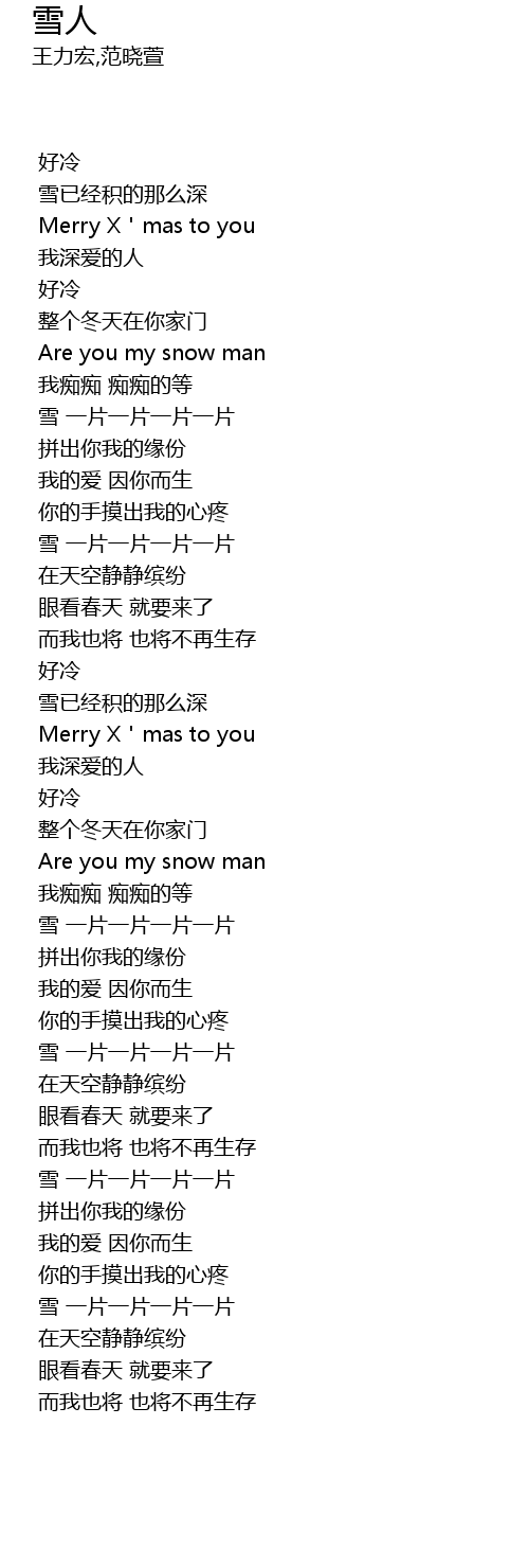| [02:29.100] | Are you my snow man |
