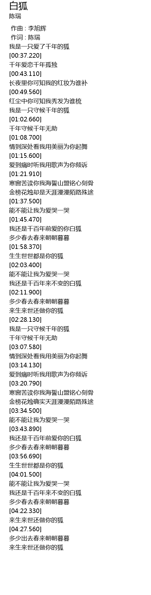 | [03:44.510] | 我还是千百年前爱你的白狐 |