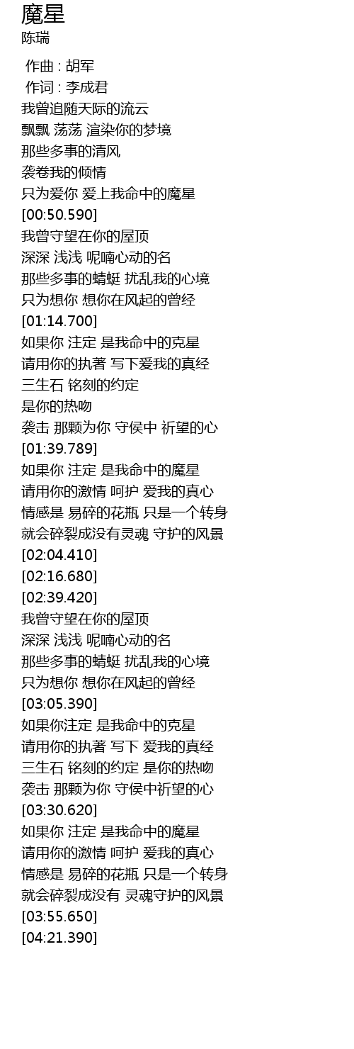 | [00:44.860] | 只为爱你 爱上我命中的魔星 |
