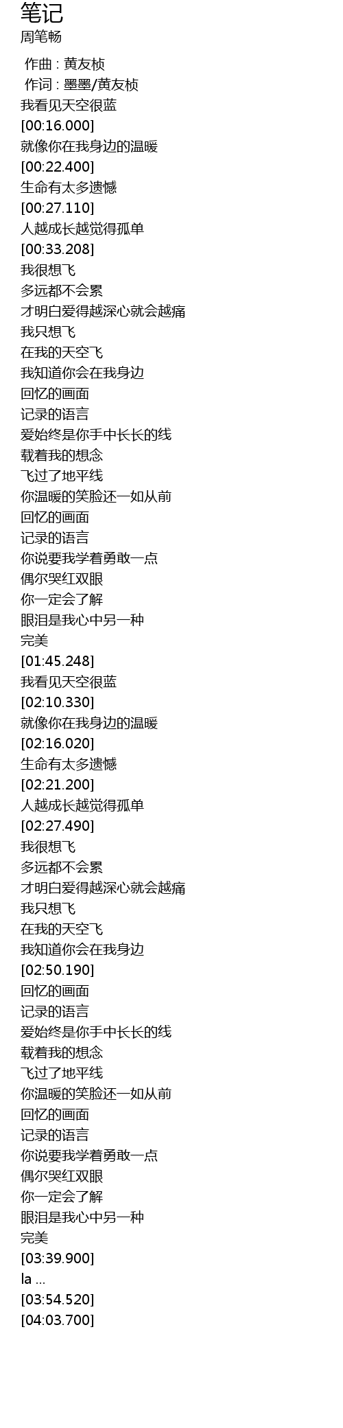 | [00:00.00] | 作曲 : 黄友桢 |