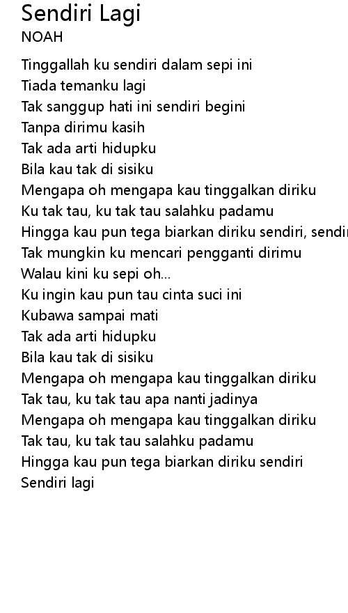Hingga kau pun tega biarkan diriku sendiri, sendiri lagi |