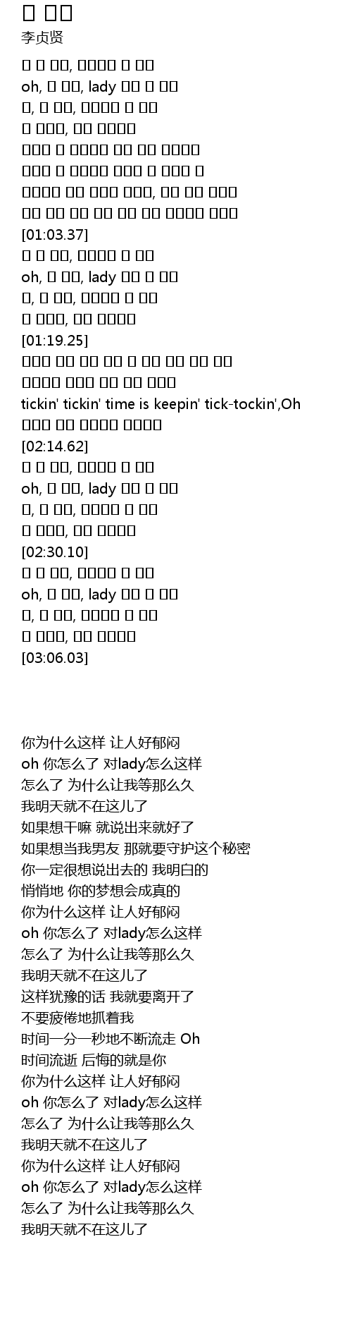 | [02:22.75] | 怎么了 为什么让我等那么久 |