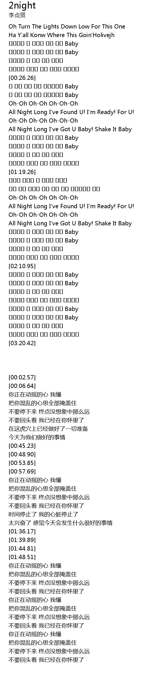 | [00:57.69] | All Night Long I' ve Got U Baby! Shake It Baby |
