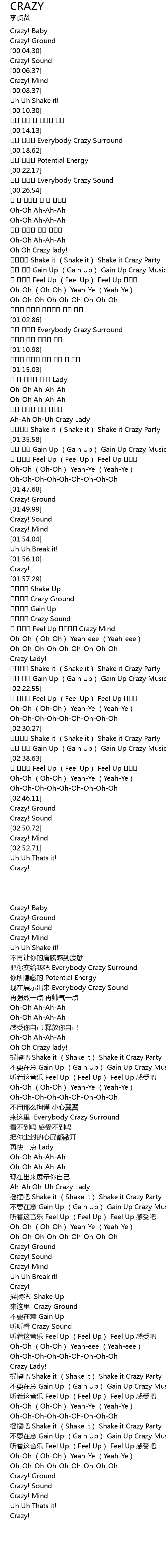 | [02:31.22] | 摇摆吧 Shake it (Shake it) Shake it Crazy Party |